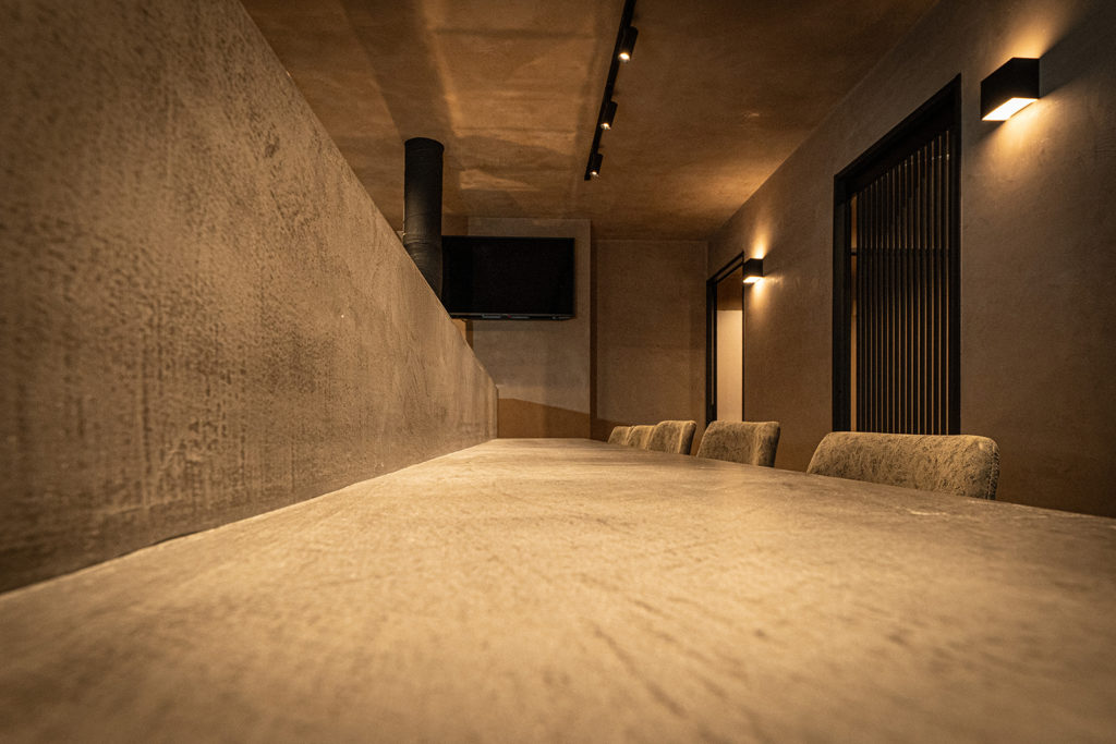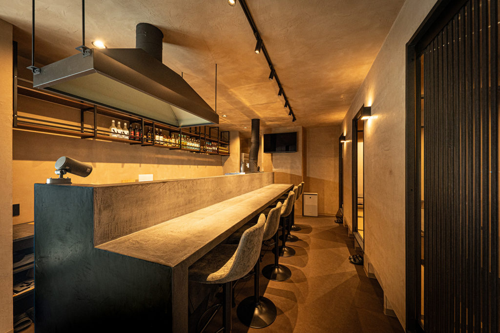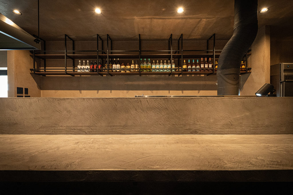 カウンターとテーブルには、耐久性と質感に優れたモールテックスを採用し、上質で一体感のある空間を演出しました。